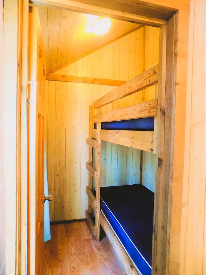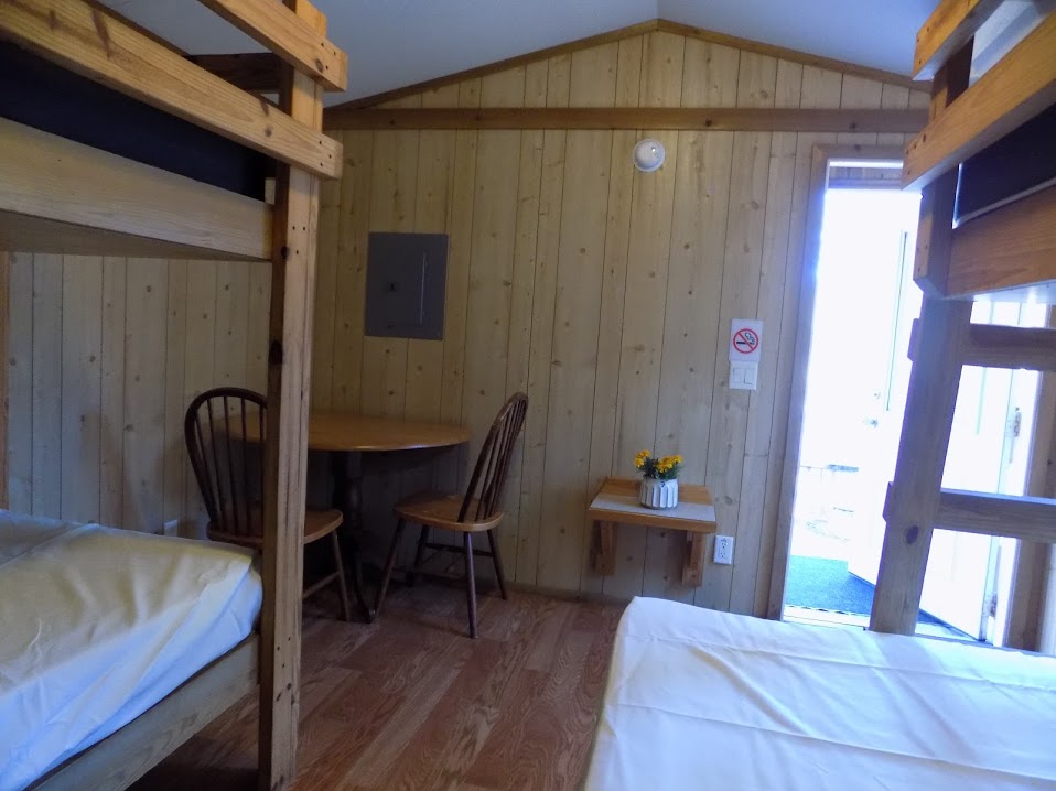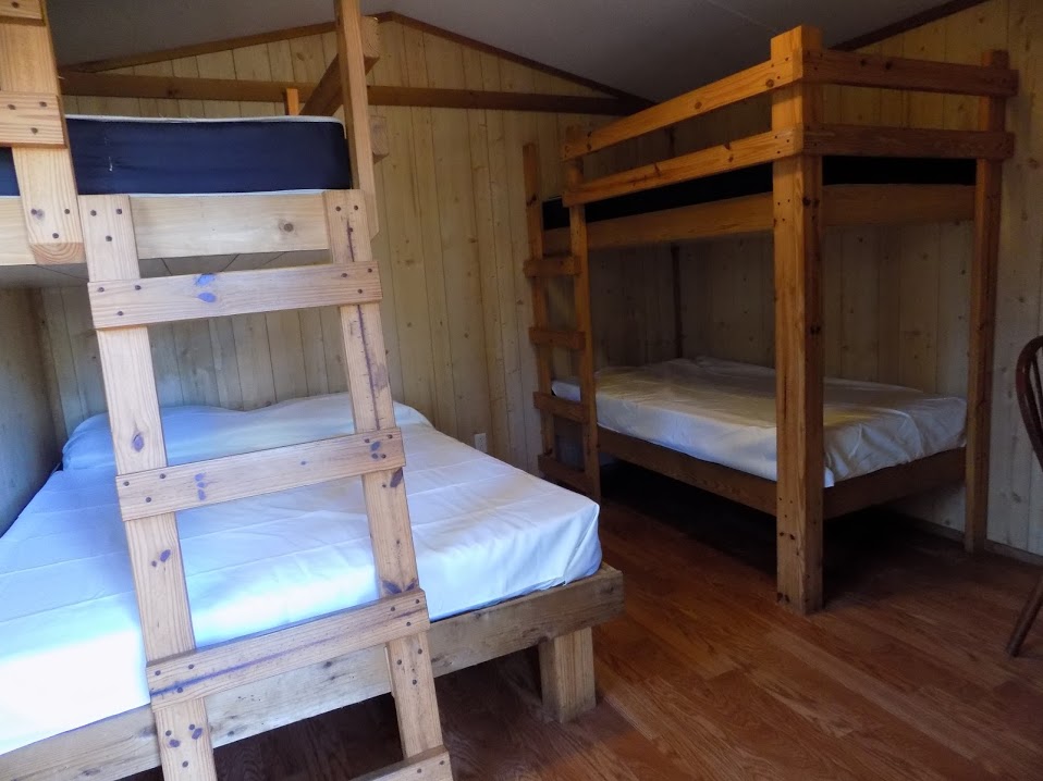Our standard cabin is a climate controlled single room unit with two sets of bunk beds (twin over twin and twin over queen). Linens are not provided.