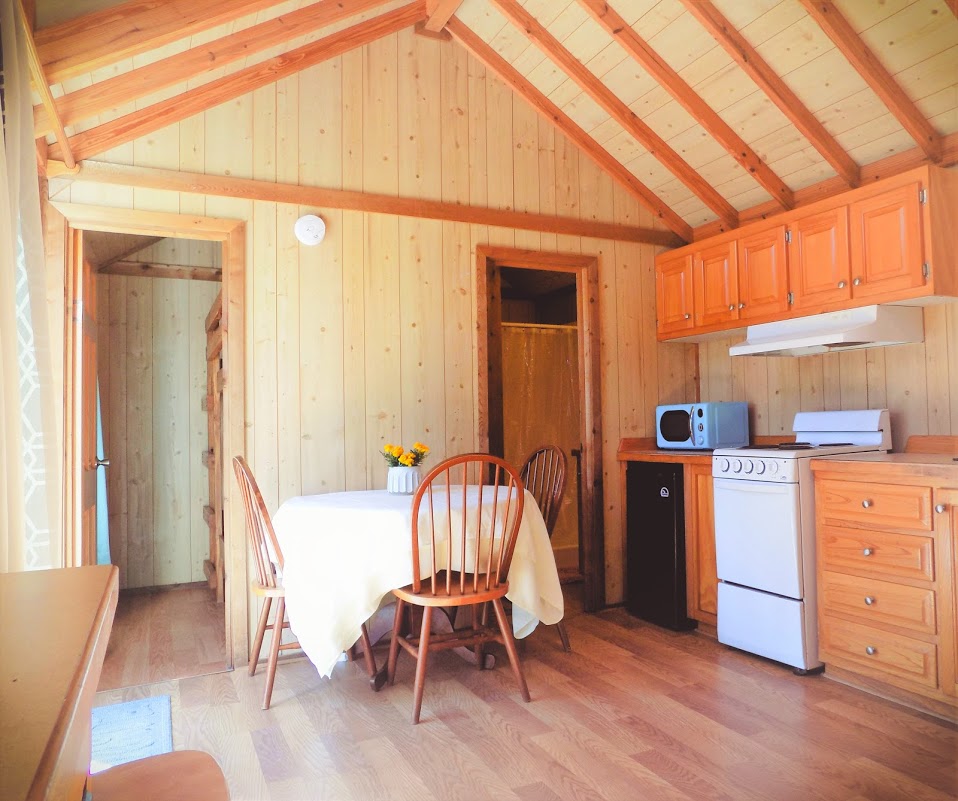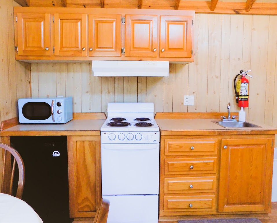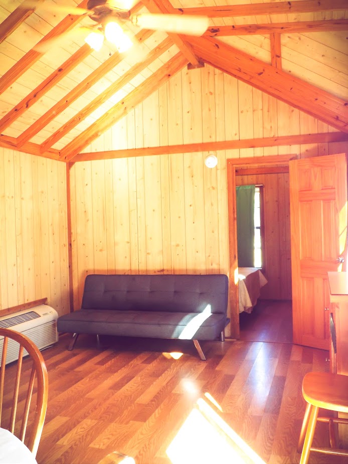 Our deluxe cabin is a climate controlled two bedroom unit (one room has a queen bed and one has a twin over queen bunkbed), a bathroom with a shower, kitchenette, and living room. Linens are not provided.